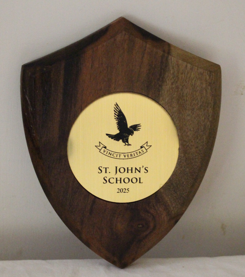 Photo : Club members with the St John's School shield  : L-R: Rupert, Dave, Michael, Paul & Marc